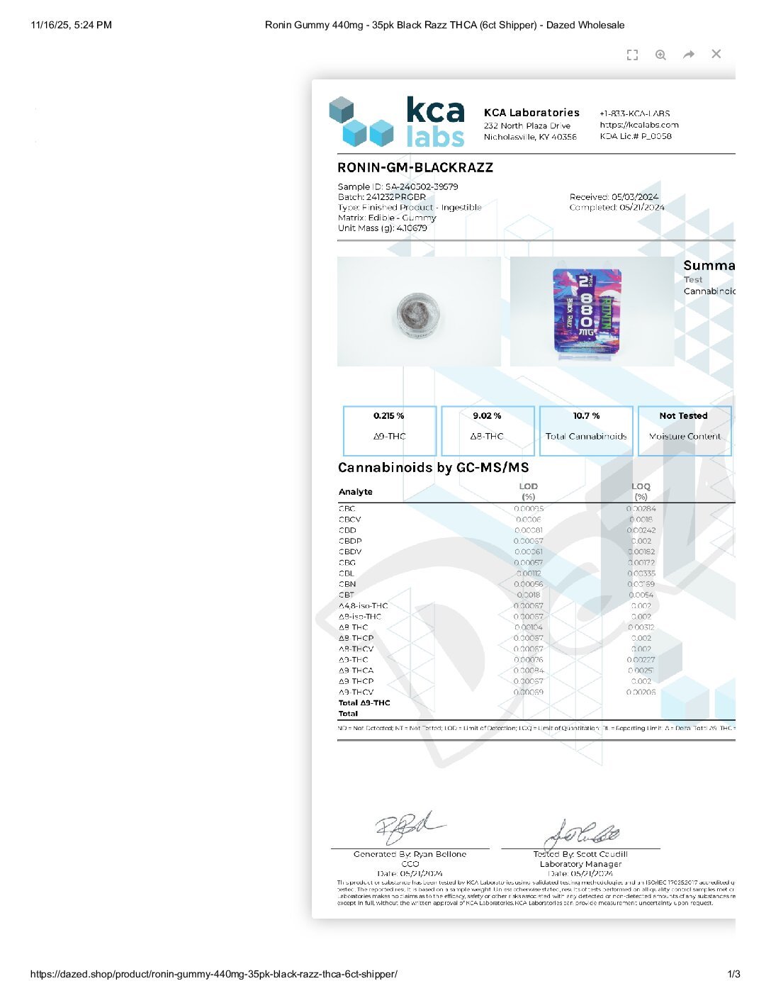 • Cannabinoids: THCA | D9THC | THCP | CBD | THC